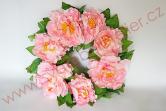 Dekorační věneček na svatební vůz z růžových pivoněk a zelených lístků na ...