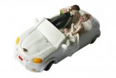 Větší figurka na svatební dort - bílý kabriolet s nevěstou a ženichem. Velikost ...