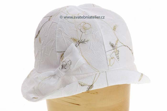 Dámský bílý kreš vyšívaný širák s mašlí.