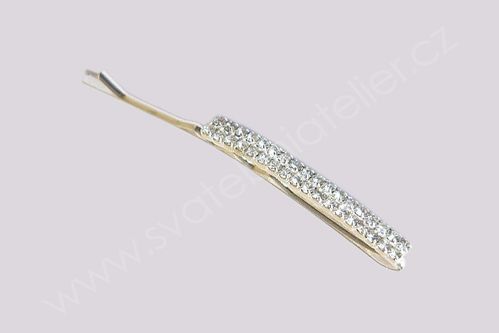 Stříbrná sponka do vlasů - vlasové pérko se dvěmi řadami stříbrných štrasů .