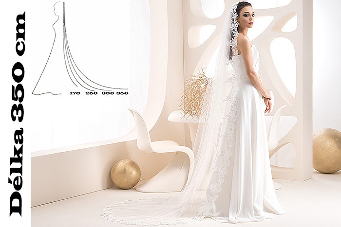 Španělský tylový závoj s guipurovou / bavlněnou krajkou, ovál, šířka 200 cm, délka 350 cm. Barvy: ecru (slonová kost) a tmavší ecru. Pozor: fotografie nemusí být ve stejné délce, tímto vybíráte délku 350 cm. Na přání je možné objednat tento závoj s guipurovou krajkou doplněnou třpytivými krystalky (příplatek 300 Kč). Připište prosím do poznámky v objednávce, že máte zájem o tuto variantu.
